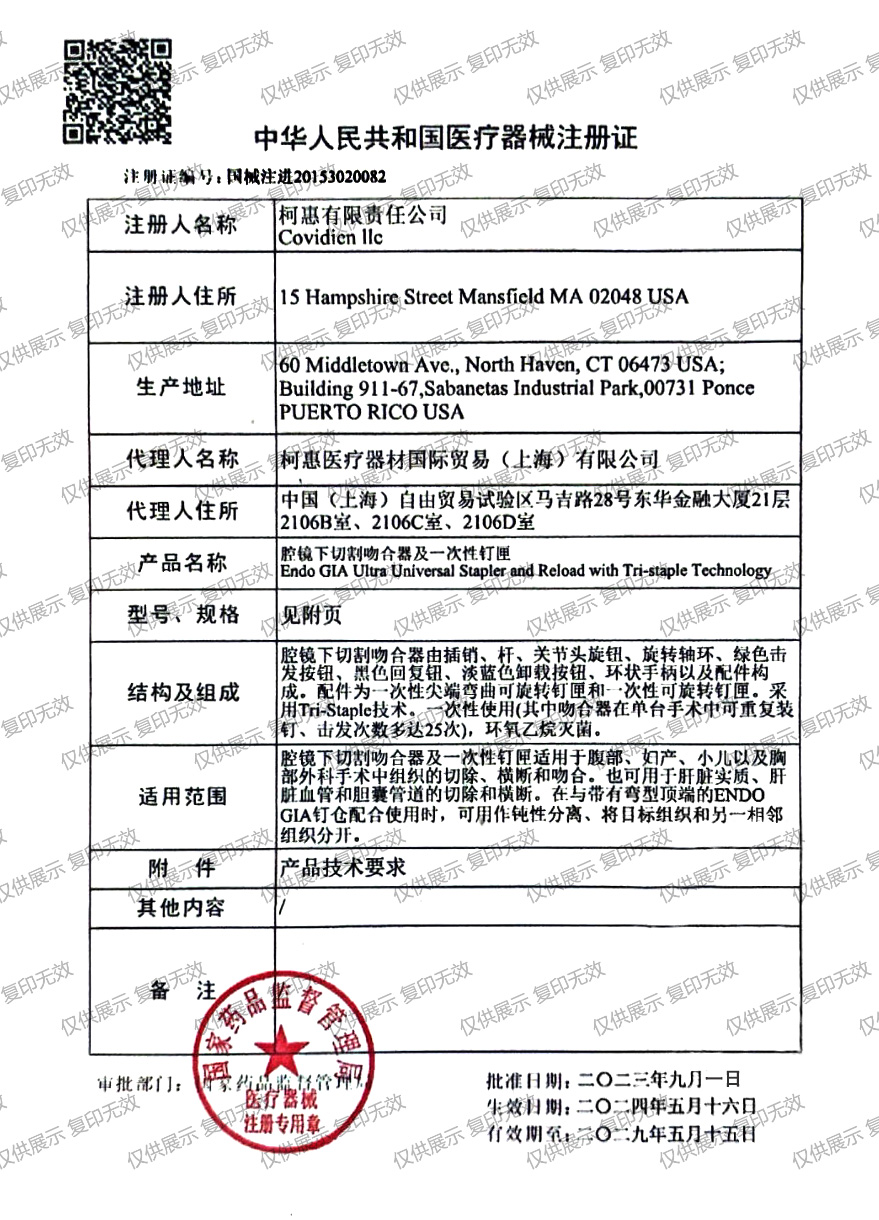 適用范圍:用于腹部外科,婦科,兒科和胸外科內(nèi)視鏡手術(shù)中組織的切除、離斷和吻合。也可應(yīng)用于肝實(shí)質(zhì)、肝血管和膽管的橫斷和切除手術(shù)中。