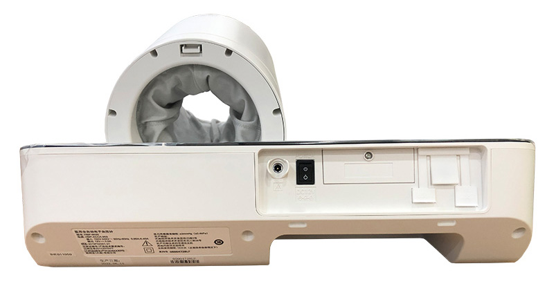 結(jié)構(gòu)及組成:該產(chǎn)品為上臂式電子血壓計(jì),由主機(jī)、擱手板、臂筒(袖帶)、電源適配器和電源線組成。