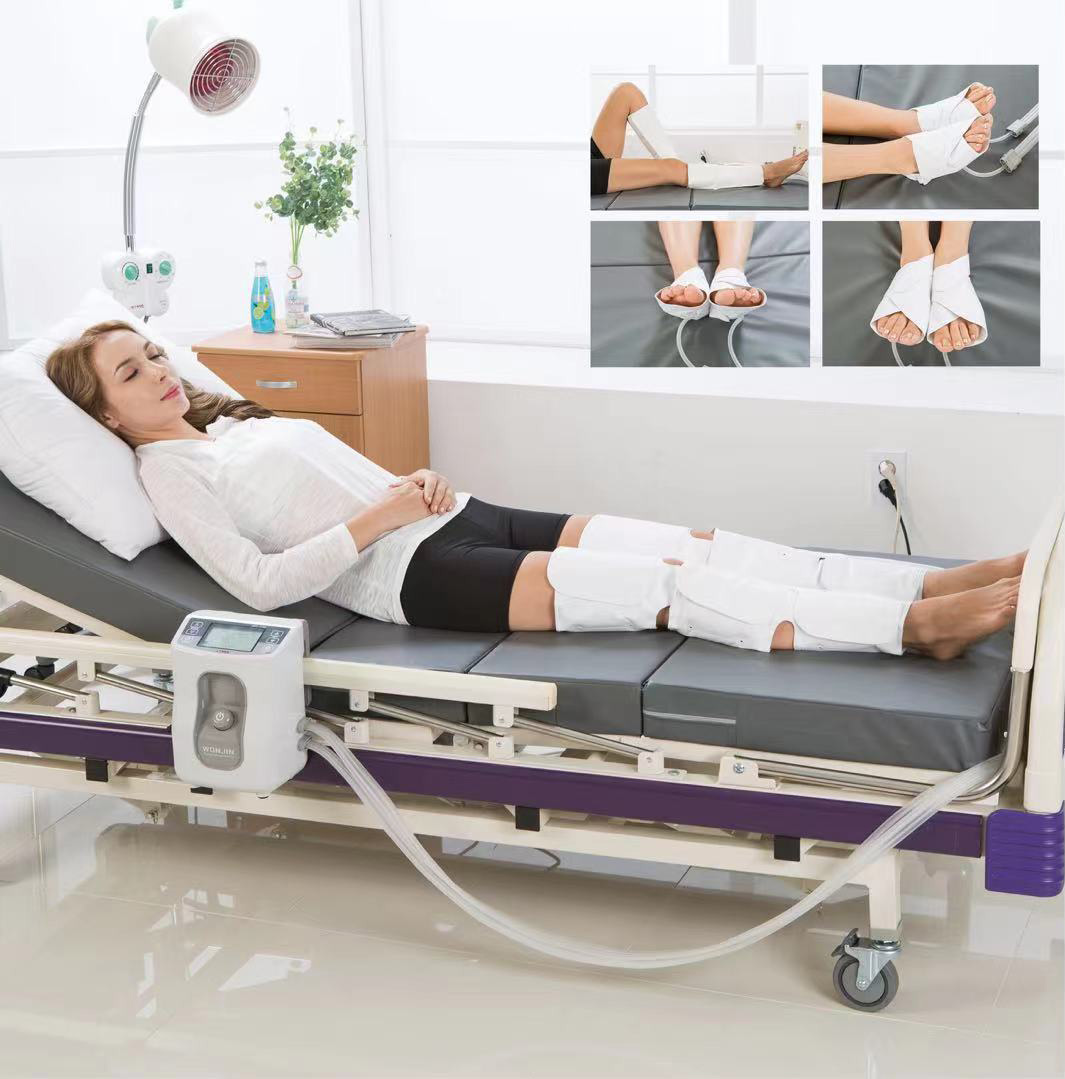 結(jié)構(gòu)及組成:由主機(jī),大腿壓力帶,小腿壓力帶,足部壓力帶,電源線,連接軟管組成。