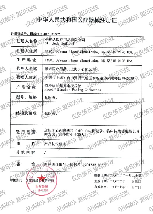 1.圣猶達雙極臨時起搏電極導(dǎo)管可能含有禁忌內(nèi)容或者注意事項,具體詳見說明書;